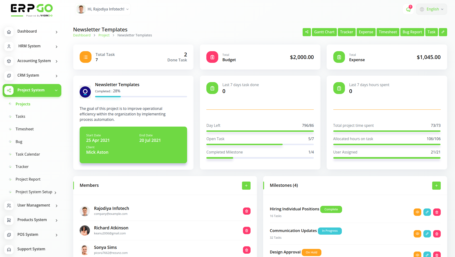 ERPGo SaaS All In One Business ERP With Project, Account, HRM, CRM